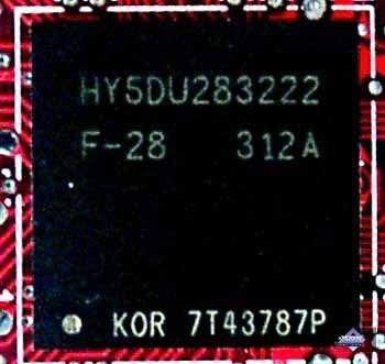 | Карта имеет интерфейс AGP x8/x4/x2, 128 МБ памяти DDR SDRAM, размещенной в 8-ми микросхемах на лицевой и оборотной сторонах PCB. На карте установлены микросхемы памяти Hynix. Время выборки у микросхем памяти 2.8 ns, что соответствует частоте работы примерно 350 (700) МГц, память работает на частоте 340 (680) МГц. Частота работы GPU 380 MHz, шина обмена с памятью 256бит. Обращу внимание на то, что конвейеров рендеринга4 (а не 8!). | ![]() |