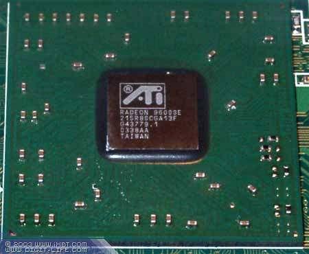 Полагаю, что снова и снова рассматривать процессоры (визуально) нет смысла, единственное, что отмечу, что у RADEON 9600SE на чипе уже стоит полная маркировка, а не кодовое имя RV350: