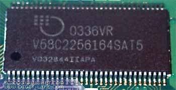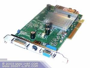 | Микросхемы памяти Mosel Vitelik. Время выборки у микросхем памяти 5 ns, что соответствует частоте работы 200 (400) МГц, на какой память и работает. Частота работы GPU 325 MHz. Шина обмена с памятью 64 bit. | ![]() |