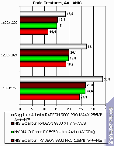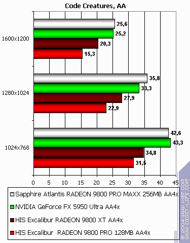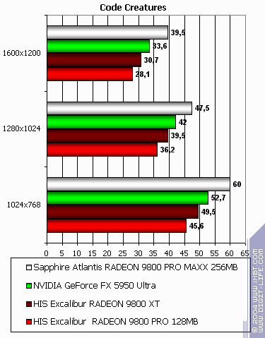 - Code Creatures Benchmark Pro (CodeCult) игровой тест, демонстрирующий работу платы в DirectX 8.1, Shaders, HW T&L.