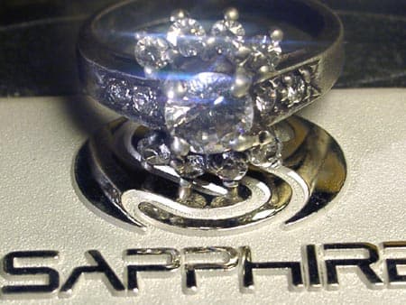 К сожалению, как я уже говорил выше, карта попала к нам всего на несколько часов, и даже невозможно было нормально сфотографировать все подробности. Радиаторы на микросхемах были очень крепко приклеены, поэтому я не рискнул их снимать, чтобы не ввергать в шок сотрудника Sapphire, рьяно оберегавшего эту карту. К тому же, оборотная сторона карты была хоть и весьма интересной, там вытравлены были некие секретные номера, поэтому мне не разрешили снимать эту сторону платы, даже не подводить сотрудника (все мои увещевания, что я замажу все символы, не привели ни к чему).