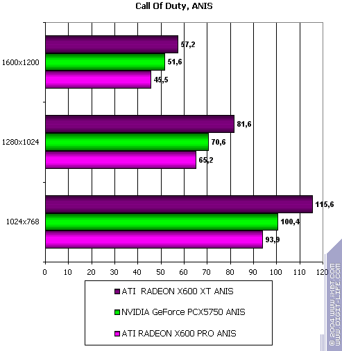 - Call of Duty (MultiPlayer) (Infinity Ward/Activision) OpenGL, мультитекстурирование, ixbt0104demo, настройки тестирования все на максимально возможном уровне, S3TC ON