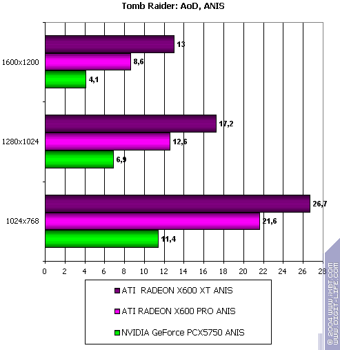 - Tomb Raider: Angel of Darkness v.49 (Core Design/Eldos Software) — DirectX 9.0, Paris5_4 demo, настройки тестирования приведены здесь.