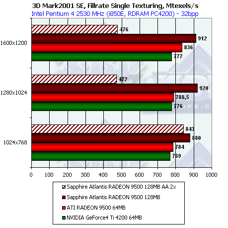 - Результаты тестов: Синтетические тест Fillrate из 3DMark2001 SE