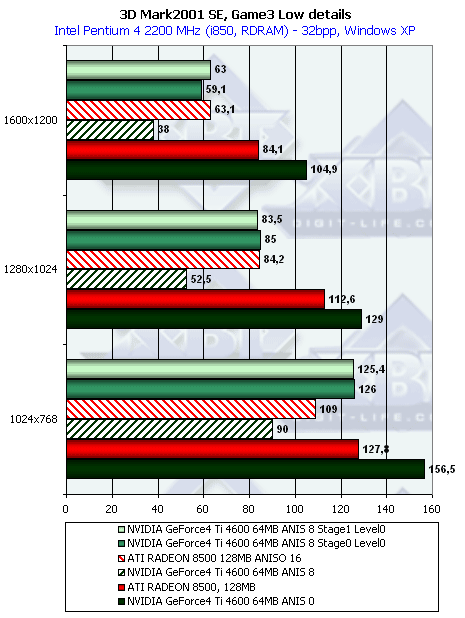 - Тестирование на базе Pentium 4 2200 МГц, 1600x1200, Game3 Low