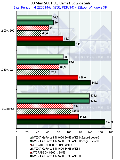 - Тестирование на базе Pentium 4 2200 МГц, 1024x768, Game3 Low