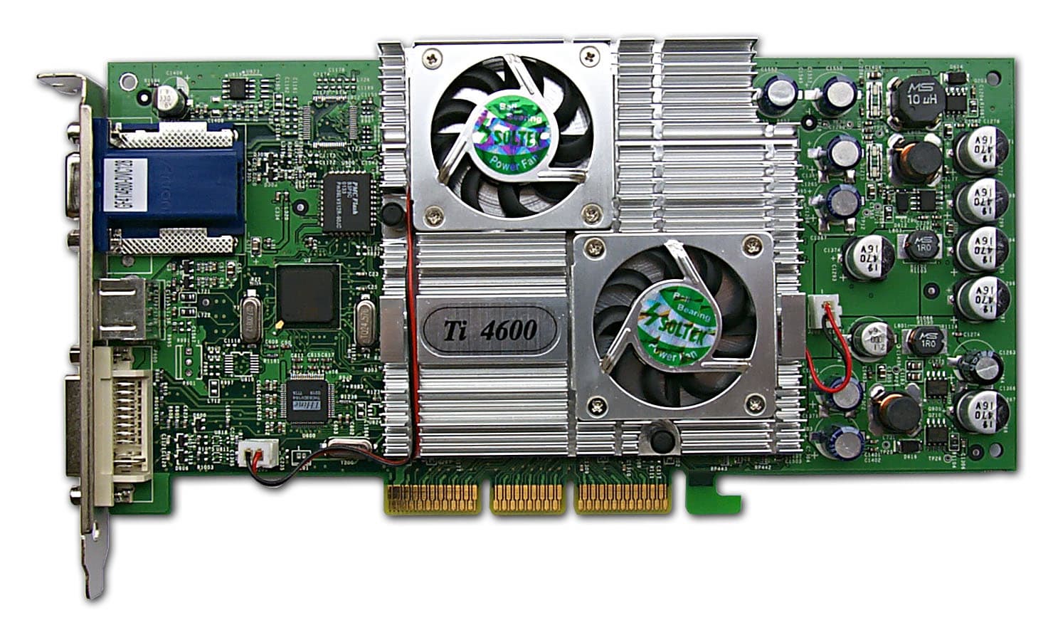 Под кулером, разумеется, можно найти GPU GeForce4 Ti 4600: