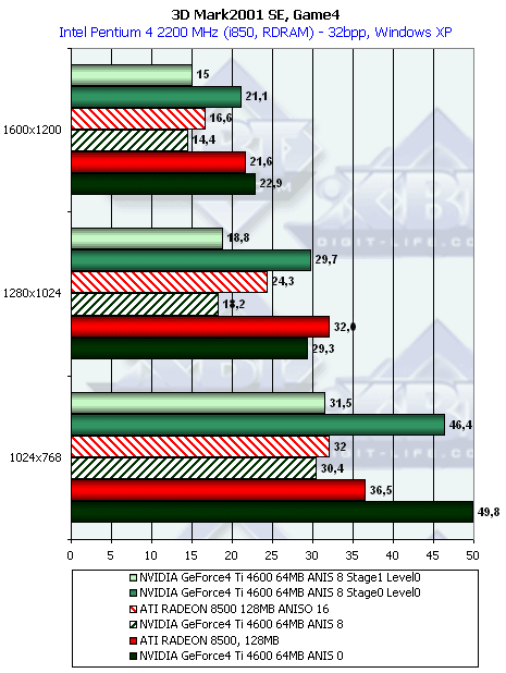 - Тестирование на базе Pentium 4 2200 МГц, 1024x768, Game4