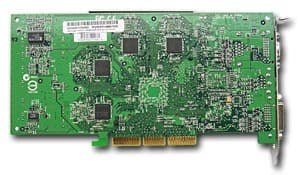 | Карта имеет AGP x2/x4 интерфейс, 128 МБ DDR SDRAM памяти, размещенной в 8-ми микросхемах на обеих сторонах PCB. На видеокарте установлены модули памяти от Samsung со временем выборки 2.8 ns, что соответствует частоте работы примерно 357 (714) МГц, память же работает на 325 (650) МГц). GPU функционирует на обычной для Ti 4600 частоте 300 МГц. | ![]() |