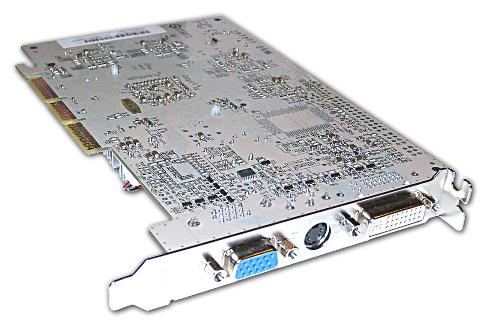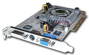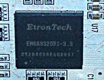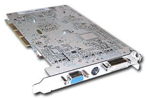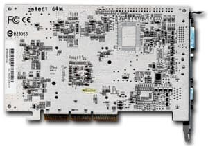 | Карта основана на интерфейсе AGP X2/4/8, имеет 64 мегабайт DDR SDRAM памяти, размещенной в 4-х микросхемах на лицевой стороне PCB. Интерфейс обмена с памятью 128бит. Память изготовлена EtronTech, время выборки 3.3 ns, что соответствует частоте работы примерно 300 (600) МГц, на какой память и работает. Ядро функционирует на стандартной для Xabre 600 частоте 300 МГц. | ![]() |