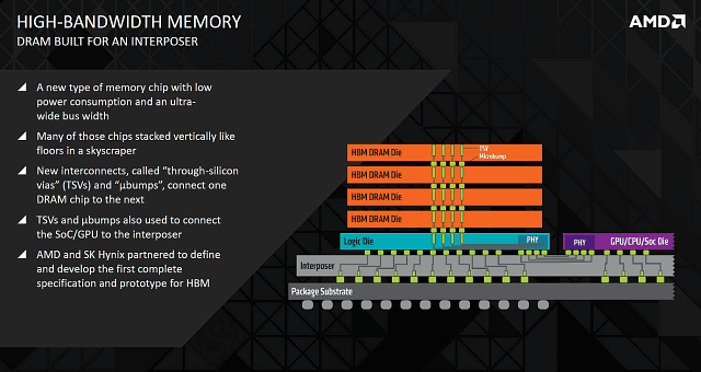 Один из самых спорных моментов в характеристиках новой модели — наличие лишь 4 ГБ видеопамяти, чего пока что хватает даже для высоких разрешений при максимальных настройках качества, но в ряде современных игр при 4K-разрешении рендеринга, а также включении полноэкранного сглаживания и высоких настройках качества, уже сейчас требуется еще больший объем. И AMD была бы рада предложить вариант с 8 ГБ, но увы — первое поколение HBM-памяти просто не позволяет сделать его. Подробнее обо всех тонкостях, связанных с HBM-памятью, читайте ниже.