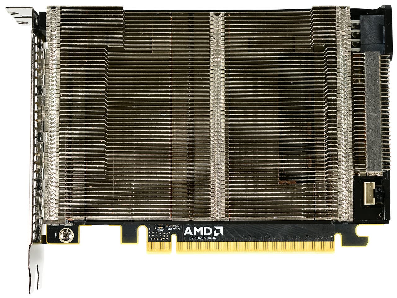 Среди разъемов на плате есть один видеовыход формата HDMI и три DisplayPort. От устаревшего разъема DVI решили избавиться совсем, хотя в Radeon HD 7970 и Radeon R9 290X они ещё были, а иногда и по два. И пользователям старых мониторов с DVI-интерфейсами теперь придется использовать переходники: пассивные, если достаточно Single Link, и более дорогие для Dual Link соединений.