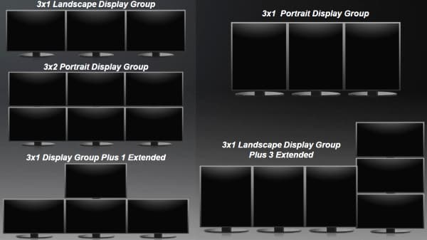 Анонсированные новые решения среднего ценового диапазона от AMD не были обделены и поддержкой интересной технологии одновременного вывода изображения на три устройства под названием Eyefinity. Расширенная поддержка мультимониторных конфигураций в виде подключения трёх, а то и шести мониторов к одной видеокарте, может быть полезна как в играх, так и в рабочих применениях.