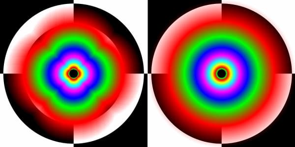Все новые чипы семейства RV8xx, в том числе и RV840 «Juniper», отличаются поддержкой нового алгоритма анизотропной фильтрации, который отличается улучшенным качеством. Текстурные мип-уровни теперь расположены по идеальным окружностям. Вот сравнение старого алгоритма и нового (обратите внимание на плавность переходов между мип-уровнями и геометрическую правильность окружностей):