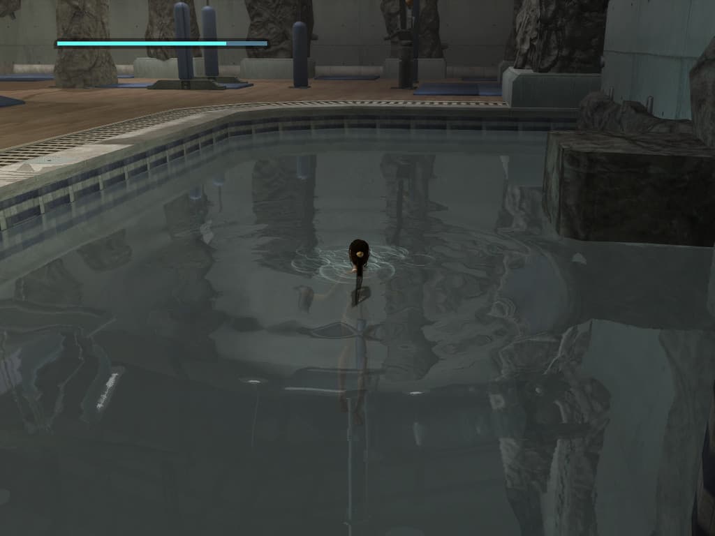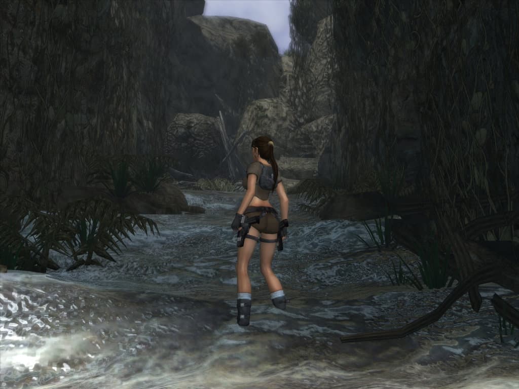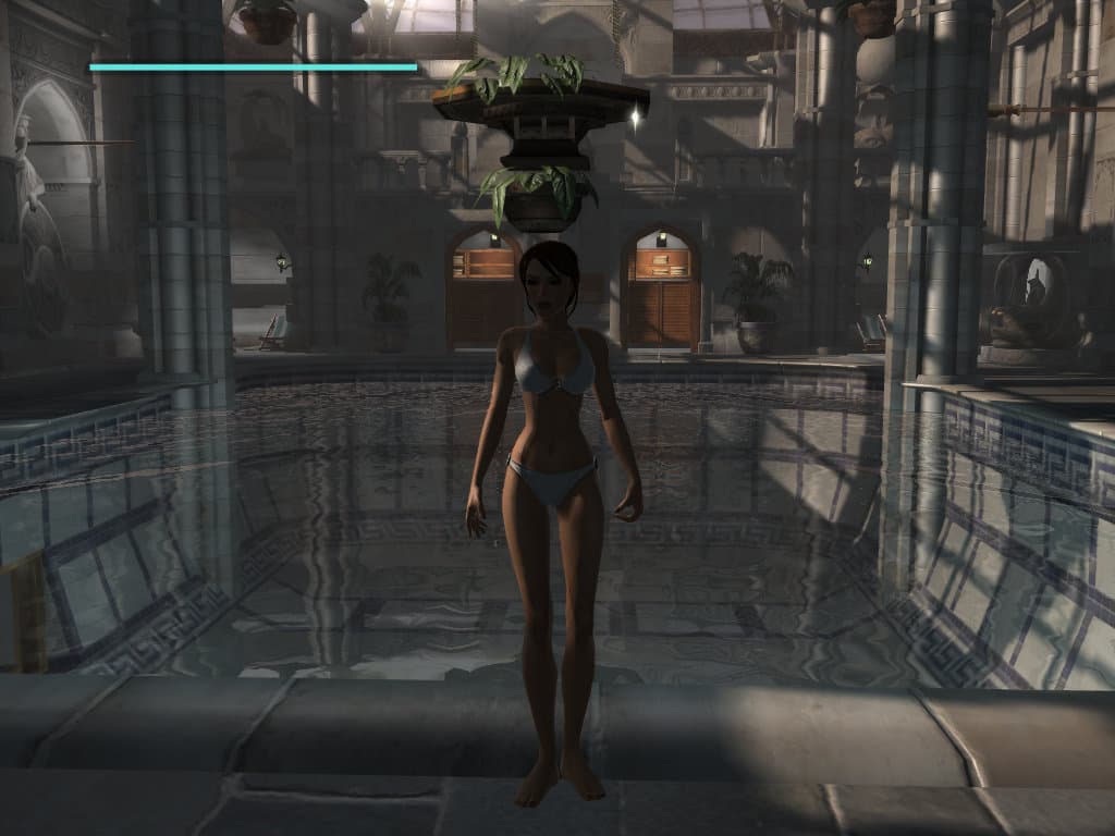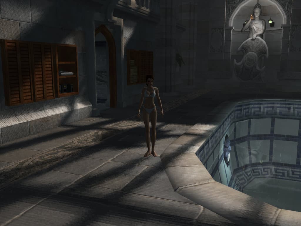 На них уже видно и наложение карт нормалей (камни, пистолеты и модель Лары), и продвинутые шейдерные программы, такие как прозрачная водная поверхность с отражениями. Преломлений в воде пока не было показано, равно как и наложения динамических теней от всей геометрии при помощи shadow maps.