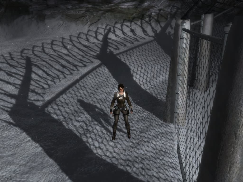 Расчет теней в игре для «Next generation content» и обычного режима отличается. Хотя и там и там используются карты теней (shadow maps), в обычном режиме тень рассчитывается только для главного персонажа, а в режиме максимального качества, который нас интересует значительно больше, рендерятся динамические тени для всей геометрии уровня. Тени рассчитываются от всех источников освещения, в том числе от встроенного фонарика героини, но источники расставлены на уровнях так, чтобы не было большого их скопления, чаще всего рассчитываются тени от одного или двух, как максимум. Такое решение получило применение в играх с большими открытыми пространствами в последнее время, особенно в мультиплатформах с Xbox 360. Примеры таких игр: Need For Speed: Most Wanted, Ghost Recon: Advanced Warfighter и др.