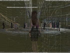 Обрабатываемый игрой объем геометрии значительно выше уровня даже самых современных игр, количество полигонов в кадре при максимальных настройках и включенном режиме «nextgen» — от 20000 до 2000000, на отдельных уровнях до четырех миллионов обрабатываемых треугольников в кадре! Немудрено, что она явно тормозит при этом… Сложность геометрии сильно зависит от уровня игры, есть примеры с 200000 треугольников в кадре, а есть более сложные (большие открытые пространства, в основном), в которых до 500000-600000 полигонов в среднем кадре. Среднее количество обрабатываемых треугольников в кадре по всей игре на максимальных настройках около 370000-400000. Цифра значительно снижается при выключении режима «nextgen» — получаемое количество треугольников от 5000 до 200000, на отдельных уровнях до 300000. В среднем около 60000 полигонов на кадр, есть уровни с 40000, а есть с 100000 полигонами.