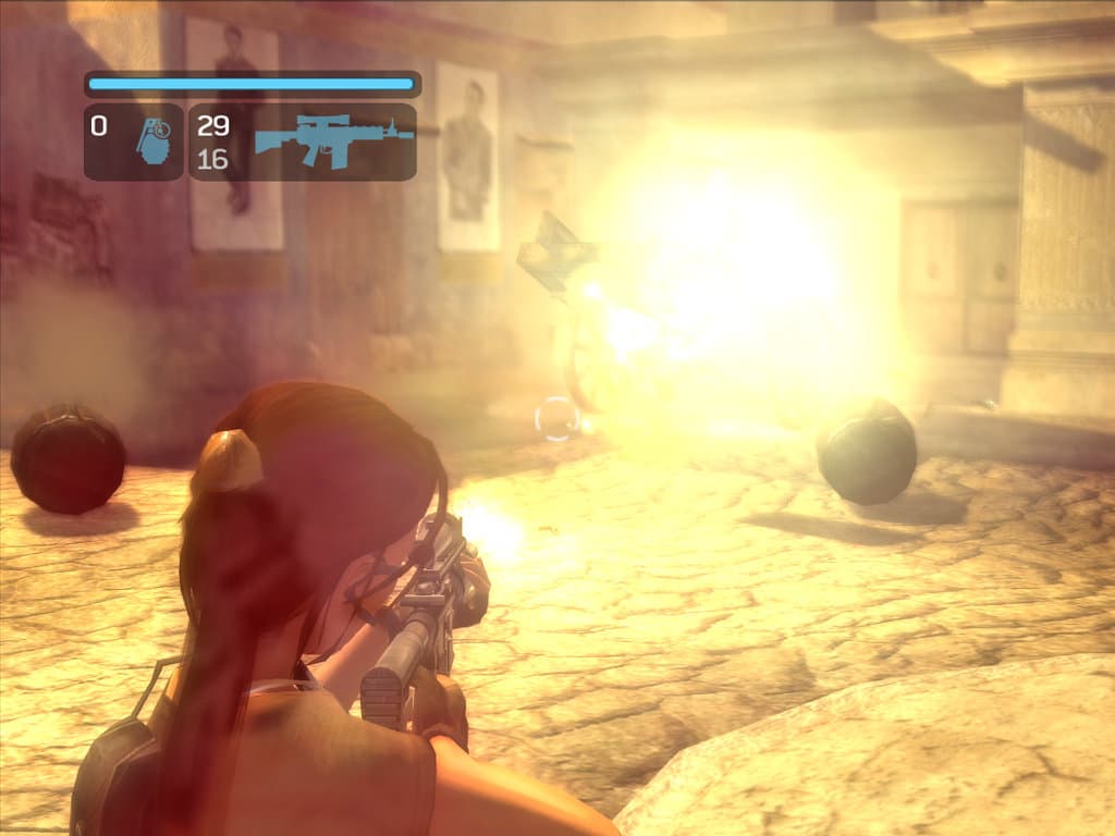 Картам теней в игре не помешала бы дополнительная фильтрация для смягчения краев теней и устранения артефактов алиасинга. Также пошла бы на пользу возможность HDR рендеринга с применением FP16 буферов, что помогло бы и качеству постфильтрации. Еще, на мой взгляд, игре не хватает грамотного применения всех видов постобработки в роликах на движке. Применение в них таких постэффектов, как depth of field и motion blur, явно недостаточное. К качеству контента также есть некоторые претензии: текстуры и геометрию уровней можно и нужно было сделать более сложными, с лучшей детализацией. Конечно, только в случае изначальной разработки для мощных игровых систем. В случае рассматриваемой игры ее подвели другие игровые платформы, весьма ограниченные в ресурсах. Будем ждать времен, когда игры будут разрабатываться с учетом возможностей ПК и игровых консолей только так называемого следующего поколения.
