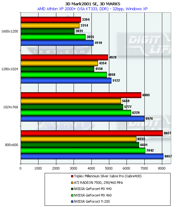 - Исследование работы Xabre400 на примере 3DMark2001 SE