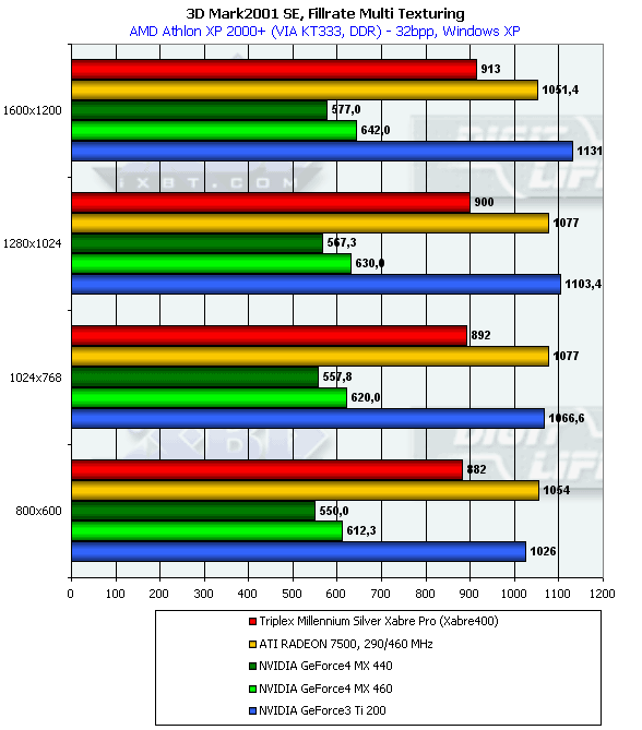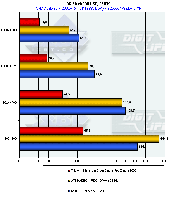 Xabre400 в этом тесте отстала почти от всех конкурентов, но у RADEON 7500 ситуация вообще катастрофическая в данном случае.