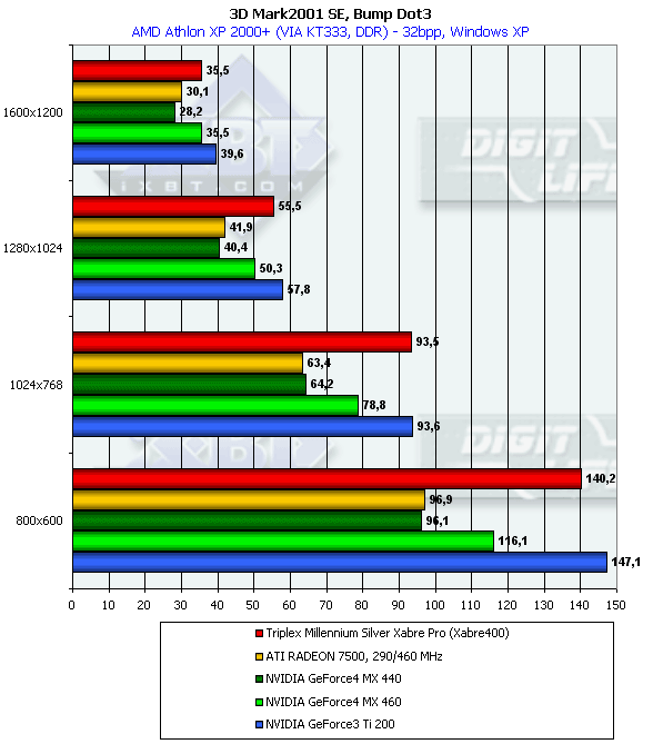 Раскладка сил в области DOT3 рельефа совсем иная Xabre достоин похвалы. Сказываются 4 пиксельных конвейера.