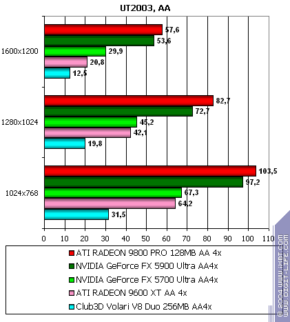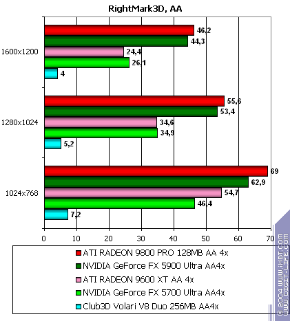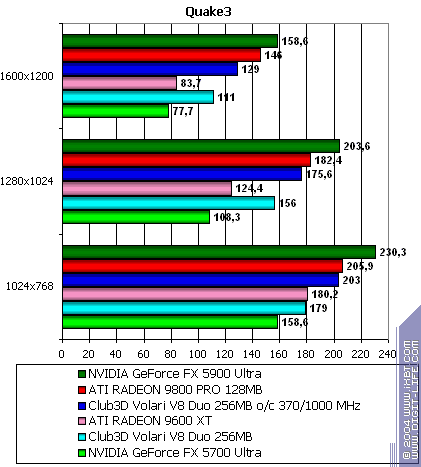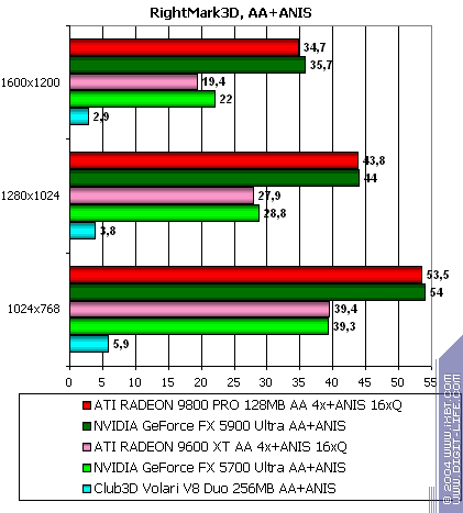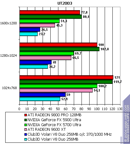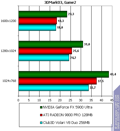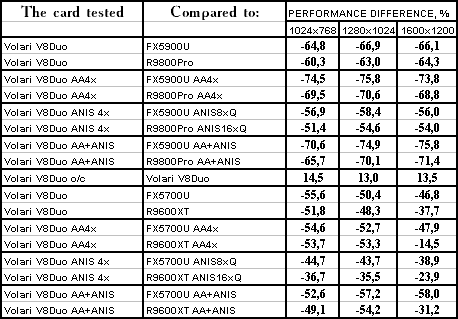 | GeForce FX 5900 Ultra | RADEON 9800 PRO | Volari Duo V8 Ultra | |