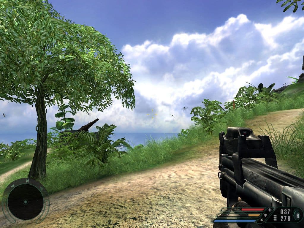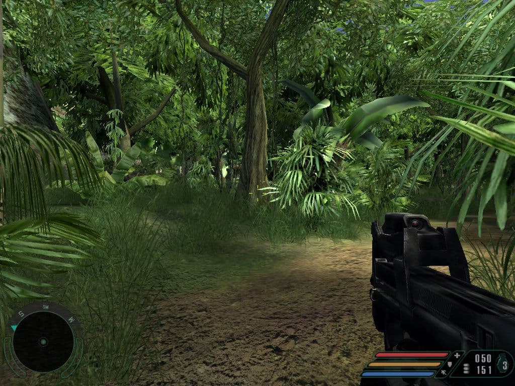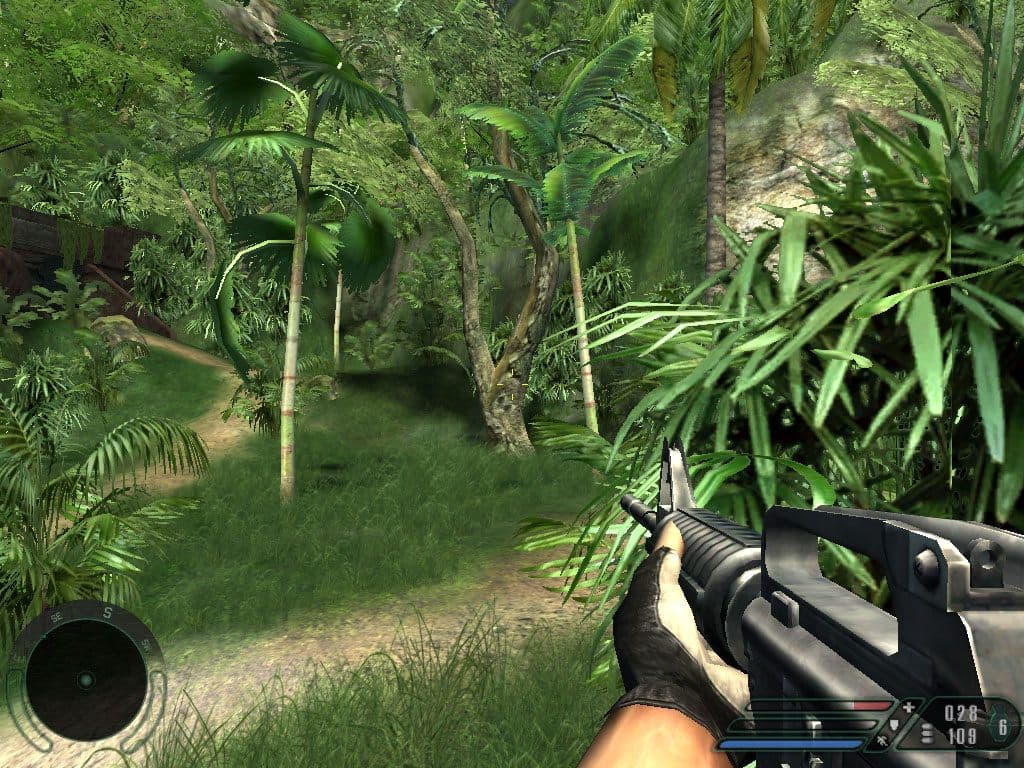 - Каждый лист на деревьях отдельно анимирован при помощи вершинных шейдеров 2.0. Трава анимирована с помощью вершинных шейдеров 1.1.