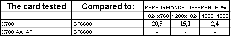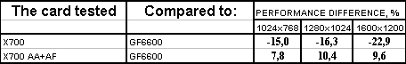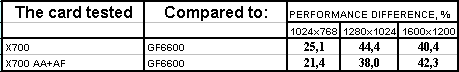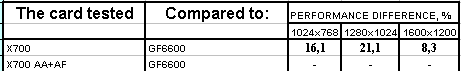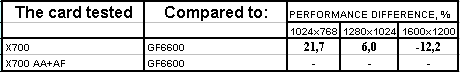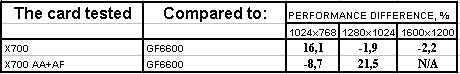 По-началу хотелось сразу написать: «А стоит ли смотреть на проценты? Все равно NVIDIA будет впереди в этой игре»… А вот результаты, несмотря на поражение без АА+АФ, дали повод для размышления, поскольку победа X700 над соперником при АА+АФ — весьма впечатляет.