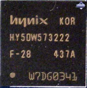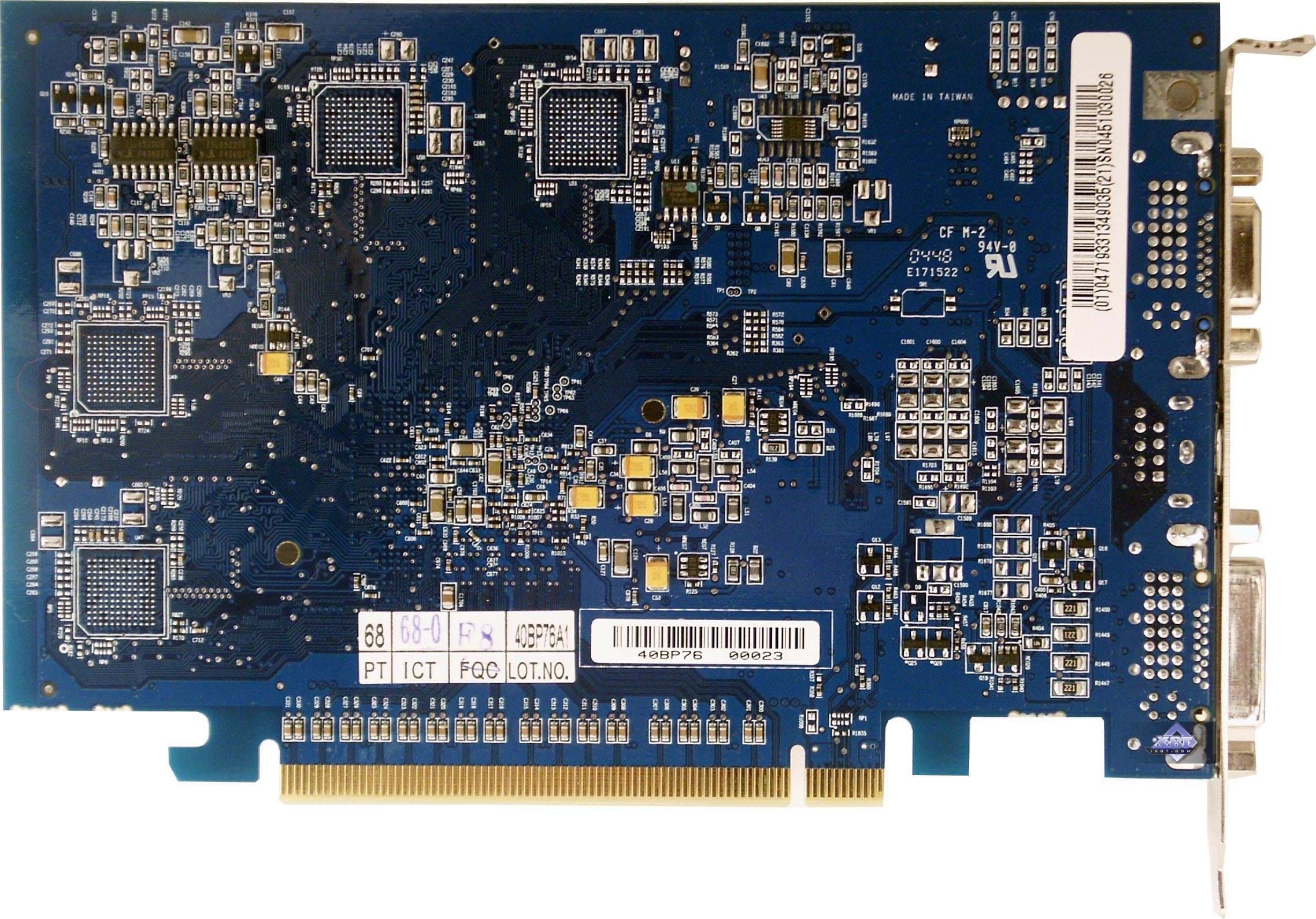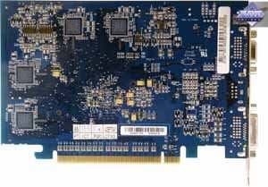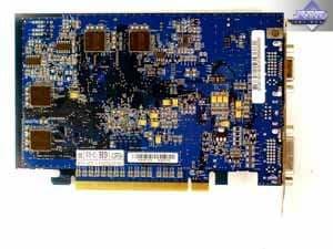 | Карта имеет 128 МБ памяти DDR SDRAM размещенной в 4-х микросхемах на лицевой стороне PCB. Микросхемы памяти Hynix. Время выборки у микросхем памяти 2.8 ns, что соответствует частоте работы 350 (700) МГц. | ![]() |