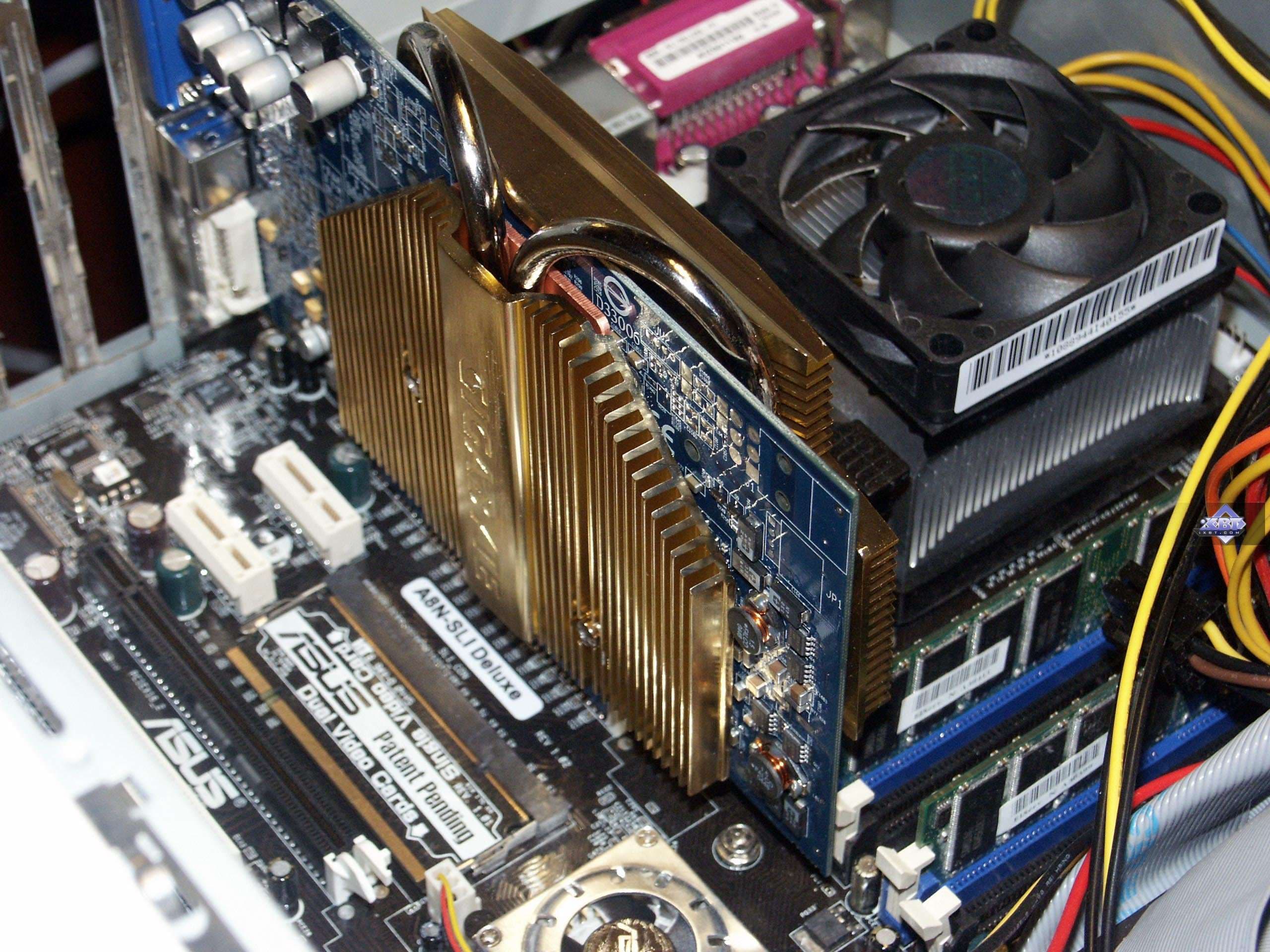 Несмотря на массивность системы охлаждения, лицевой радиатор достаточно тонкий, и потому соседние слоты рядом с видеокартой свободны. А вот задний радиатор заметно выступает, поэтому это надо учитывать, если рядом со слотом PCI-E находится чипсет с высоким радиатором, например.