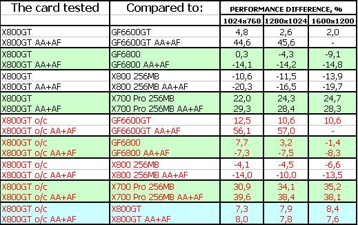 Как ни странно, но X800 GT проиграла сражение также по всем фронтам. Увы.