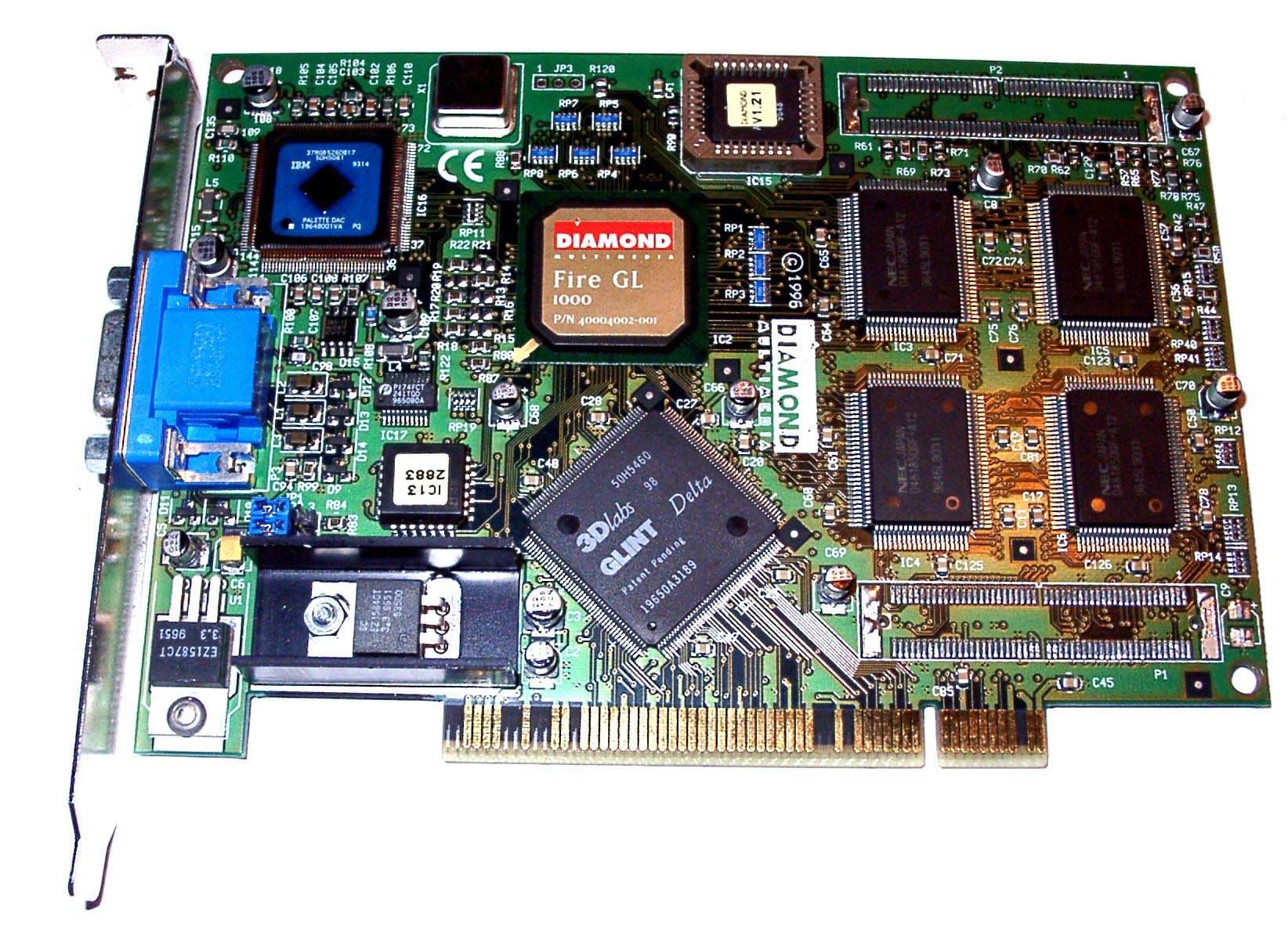 Бюджетное решение с очень неплохой производительностью для професииональных пакетов 3D-моделирования — Diamond FireGL 1000 на базе чипсета от 3DLabs (ныне компания является собственностью Creative).