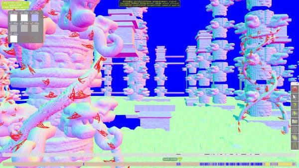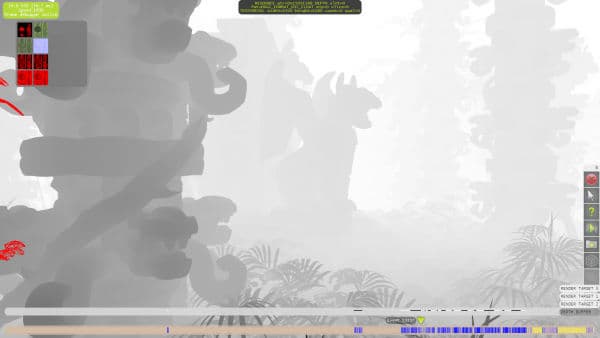 При этом все источники света являются объёмными и для них дополнительно вычисляется рассеивание света. И делается это при помощи весьма тяжёлого алгоритма ray marching, в отличие от упрощённых методов, давно появившихся в игровых приложениях. Метод очень тяжёлый вычислительно и заключается в вычислении изменения интенсивности луча на нескольких промежуточных точках. Значения записываются в отдельный буфер, и затем комбинируются с основным буфером освещения.