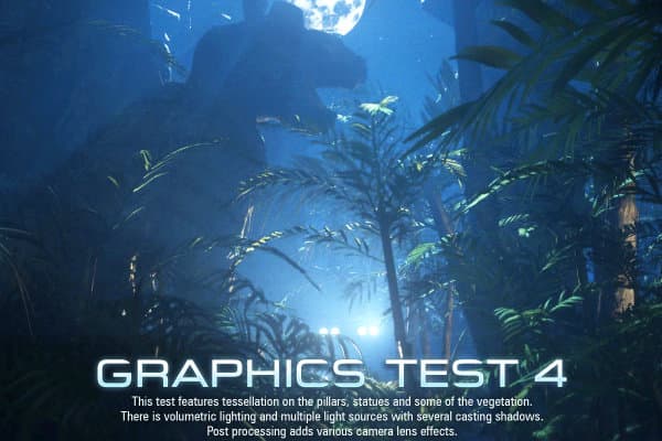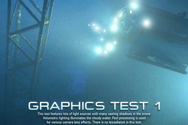 Первый тест основан на сцене «Deep Sea», в нём используется очень тяжёлое освещение с большим количеством источников света, отбрасывающих тени. В тесте очень много объёмного освещения (volumetric illumination), хорошо заметного в непрозрачной воде, и совершенно нет тесселяции. Постобработка включает некоторые оптические эффекты.