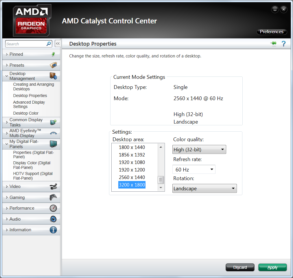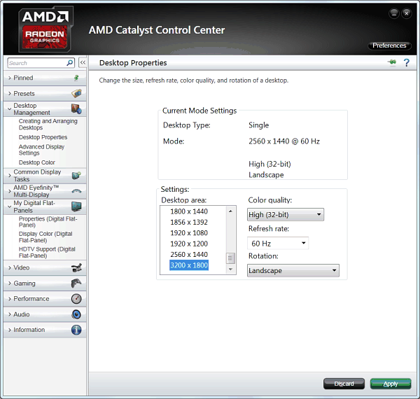 Настройки разрешения монитора AMD Catalyst Control Center: