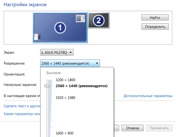 Настройки рабочего стола Windows для монитора с разрешением 2560×1440 пикселей: