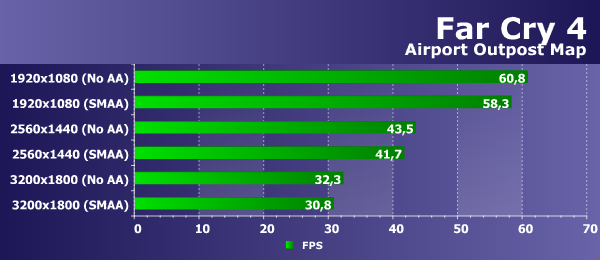 Мы провели несколько тестов в той же игре Far Cry 4, и можем сказать, что скорость рендеринга в «виртуальном» разрешении 2560×1440 и вывод его на монитор с разрешением 1920×1080 по скорости ничем не отличается от рендеринга и вывода в реальном разрешении на устройство отображения с разрешением 2560×1440 пикселей.