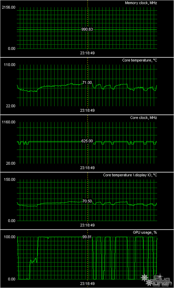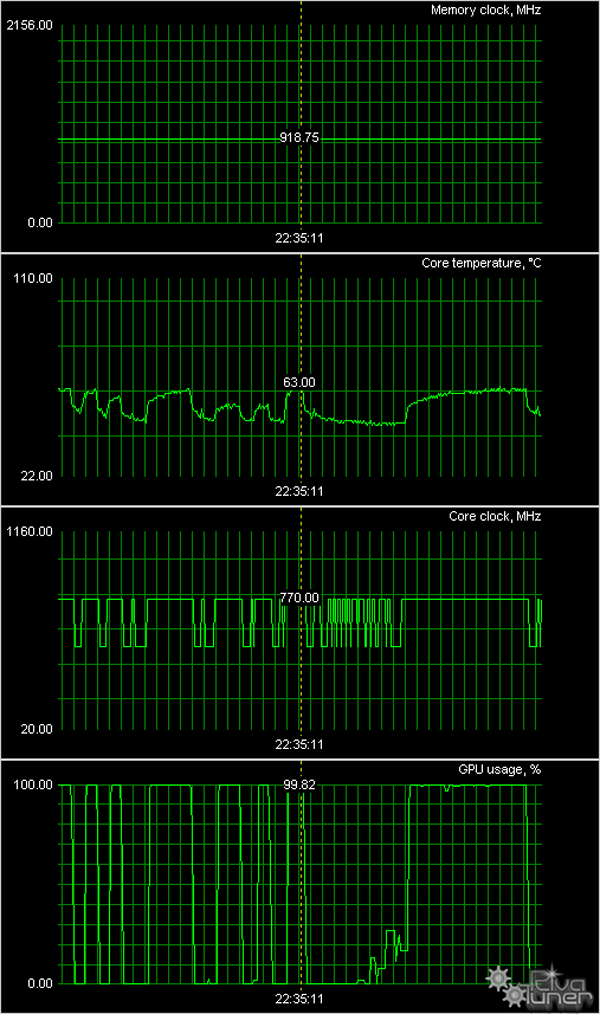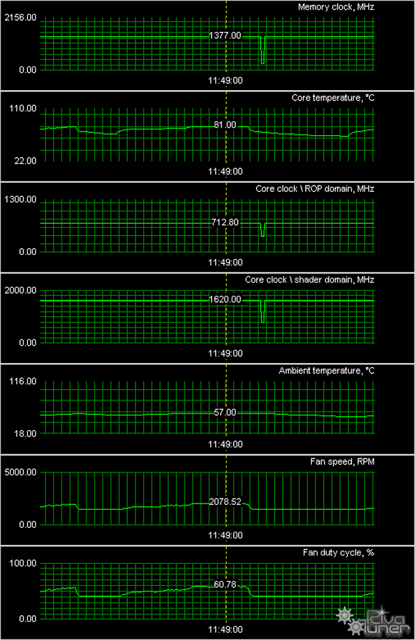 Для всех карт мы провели исследование температурного режима с помощью утилиты RivaTuner (автор А. Николайчук AKA Unwinder) и получили следующие результаты: