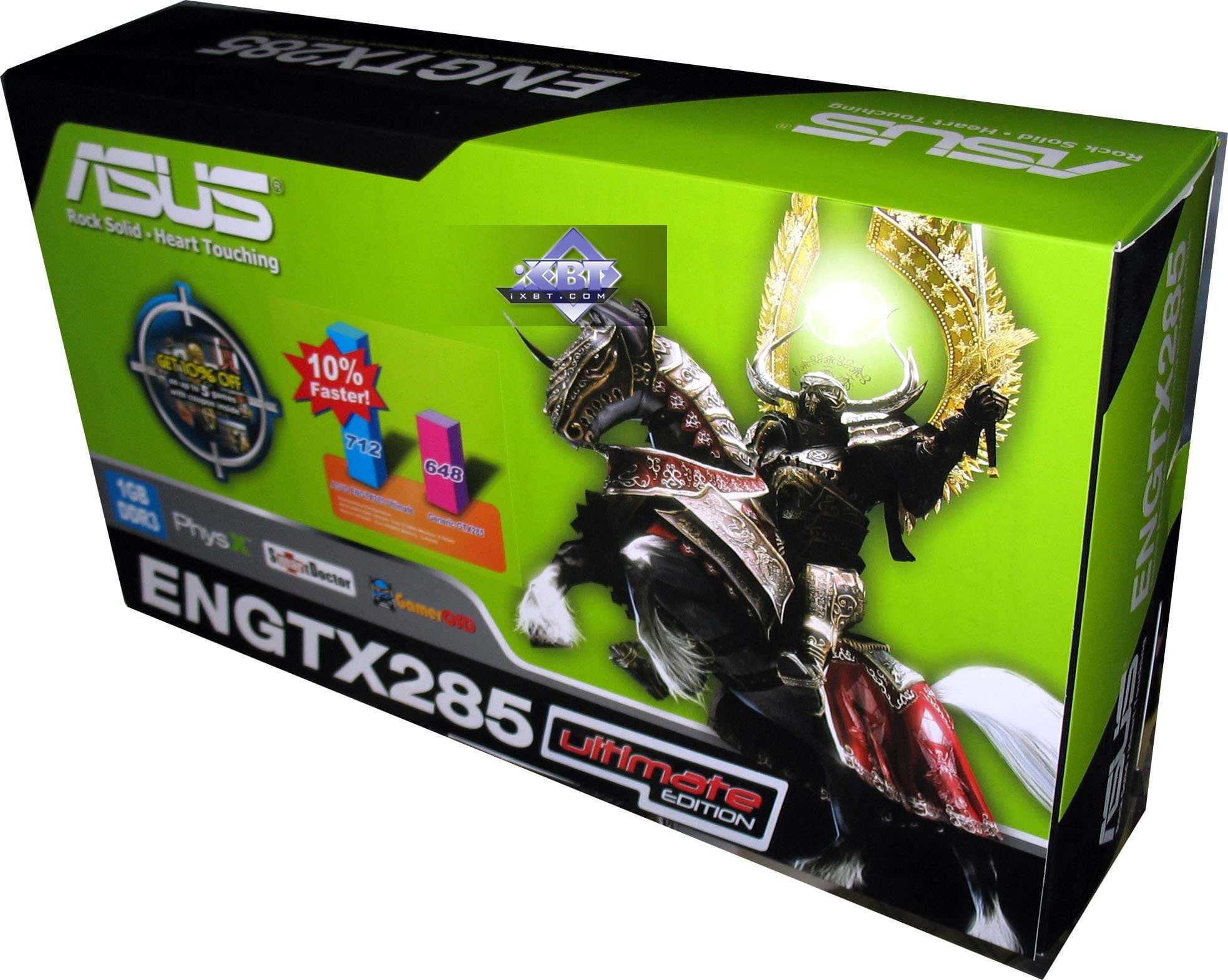 Asus ENGTX285 TOP (Geforce GTX 285) 1024MB PCI-E — стандартный GTX 285, имеющий чуть более высокие частоты работы, снабженный комплектом поставки с бонусом. В остальном ничего сверхъестественного.