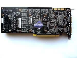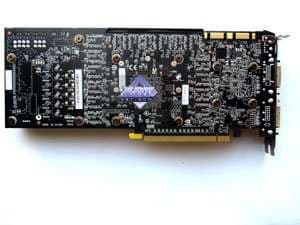 | Каждая карта имеет 1024 МБ памяти GDDR3 SDRAM, размещенной в 16 микросхемах на лицевой стороне PCB Микросхемы памяти Hynix (GDDR3). Микросхемы раcсчитаны на максимальную частоту работы в 1250 (2500) МГц. | ![]() |