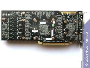 Осталось непонятно — зачем 128-битной шине 8 микросхем памяти, когда современные технологии позволяют набрать 512 мегабайт из 4х 1024-мегабитных микросхем? Возможно, что 8 512-мегабитных микросхем стоят дешевле, чем вышеуказанные.