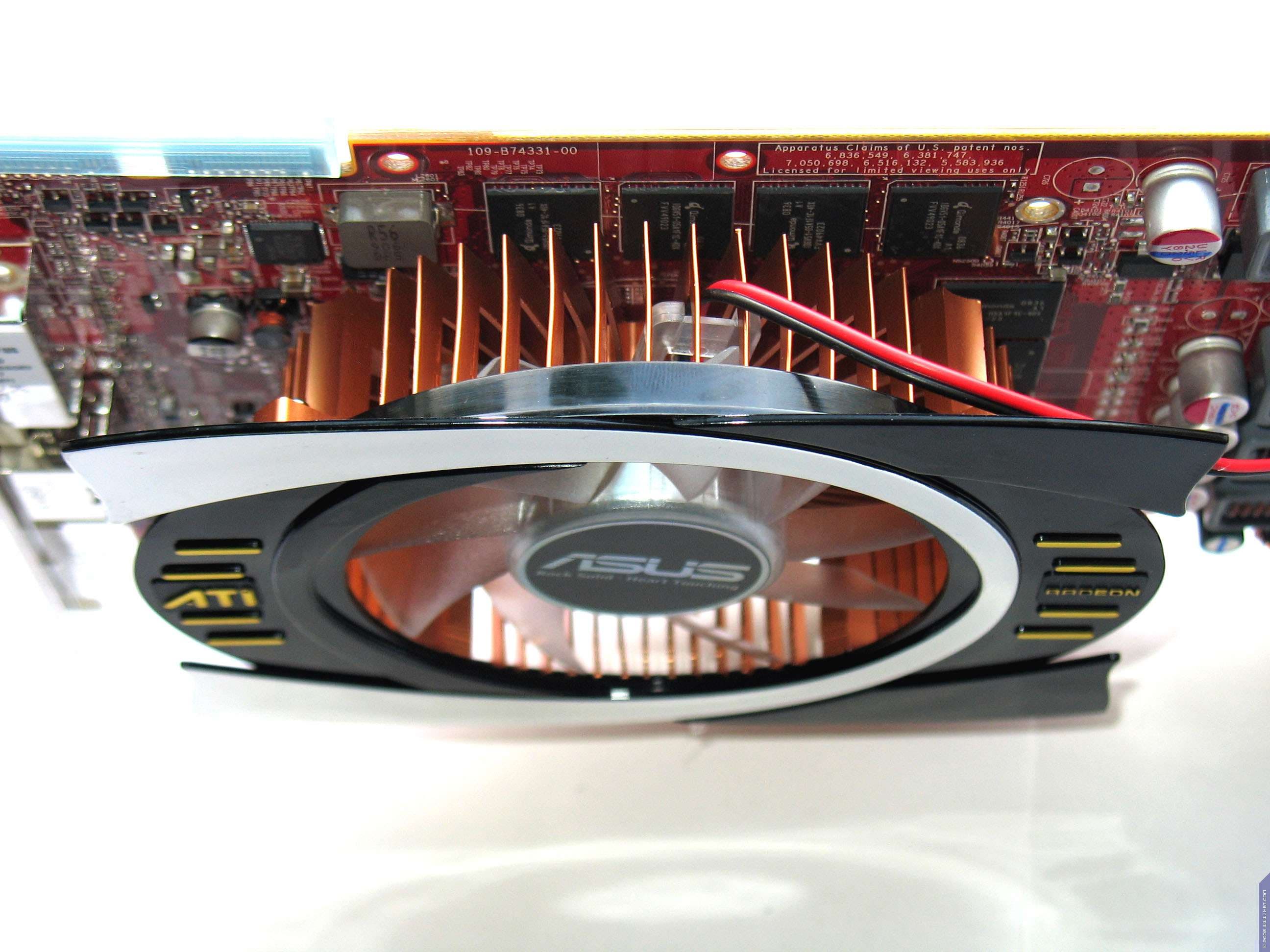 Asus EAH4770 (RADEON HD 4770) 512MB PCI-E — полностью копирует эталонную карту. Надо сказать, что новый референс кулер, хоть и не выносит тепло за пределы корпуса, но более эффективен и бесшумен. Впрочем, для карт такого класса и энергопотребления вынос тепла за пределы корпуса вовсе не обязателен. Наши впечатления об этой карте весьма и весьма позитивны, ибо даже если где-то бывали случаи отставаний от конкурента, все же надо признать, что HD 4770 опережает 9800 GT в большинстве случаев, также стоит отметить и факт превалирования над более старшим 4850 в тестах, где филлрейт играет самую важную роль (а именно он, то есть скорость заполнения трехмерной сцены, у 4770 выше благодаря очень высокой частоте работы ядра). Также стоит упомянуть и тот факт, что 128 битная шина совместно с GDDR5 ныне дает прекрасно высокую величину ПСП, с которой ранее могли бы сравниться только карты с 256-бит шиной. Это значит, что можно упрощать как сами ядра, так и PCB, получая хорошую отдачу.