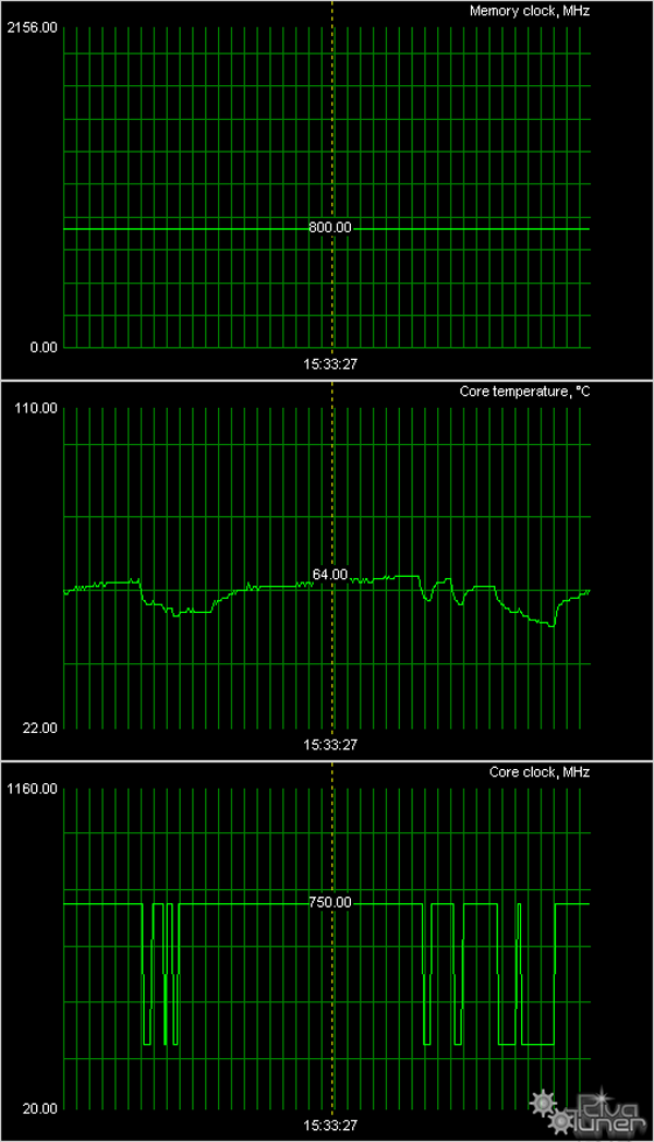 Для всех карт мы провели исследование температурного режима с помощью утилиты RivaTuner (автор А. Николайчук AKA Unwinder) и получили следующие результаты: