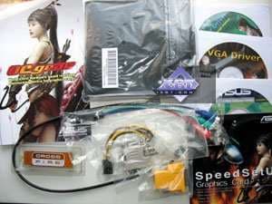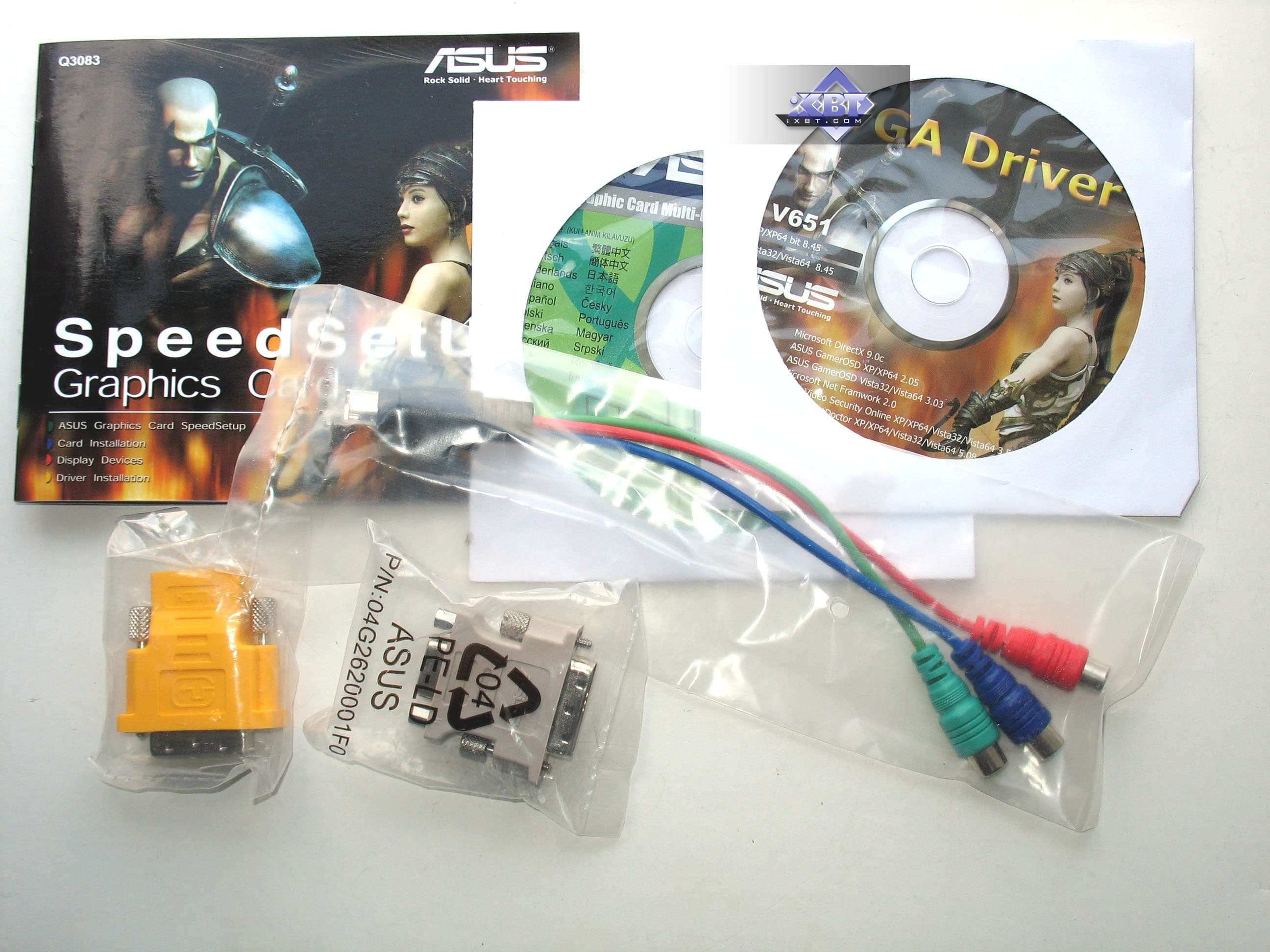 Asus EN9800GX2 (Geforce 9800 GX2) 2x512MB PCI-E, Asus EN9800GTX (Geforce 9800 GTX) 512MB PCI-E, Asus EN9600GT TOP (Geforce 9600 GT) 512MB PCI-E, Asus EAH3870X2 TOP (RADEON HD 3870 X2) 2x512MB PCI-E, Asus EAH3850 OC GEAR (RADEON HD 3850) 512MB PCI-E, Asus EAH3650 Silent (RADEON HD 3650) 256MB PCI-E