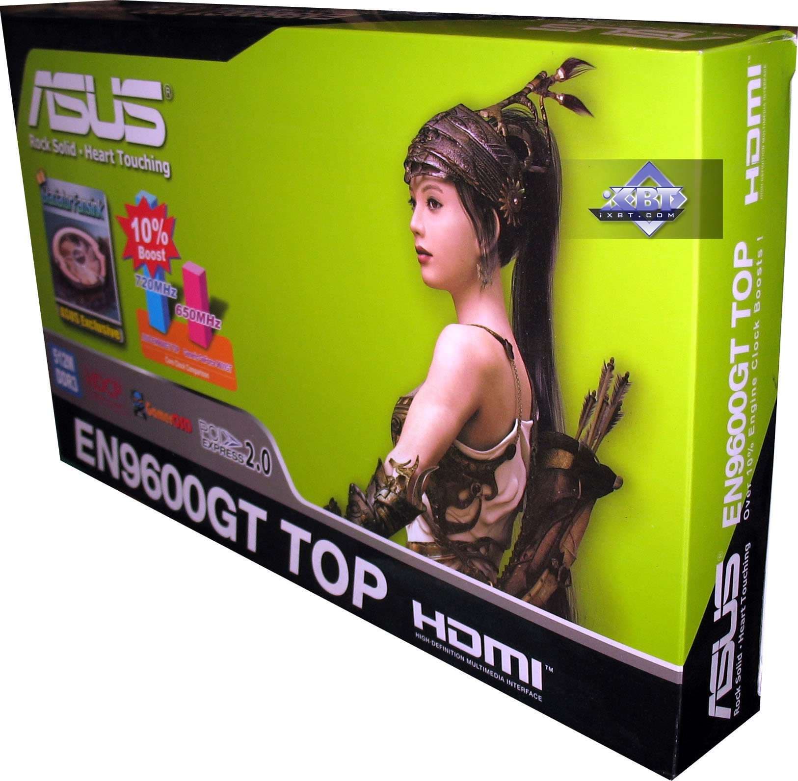 Asus EN9600GT TOP (Geforce 9600 GT) 512MB PCI-E — отличная карта для соотношения цена-скорость. Учитывая повышенные частоты работы и очень эффективный и тихий кулер, продукт смотрится весьма хорошо.