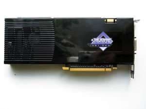 | Карта имеет 512 МБ памяти GDDR3 SDRAM, размещенной в 8 микросхемах на лицевой стороне PCB. Микросхемы памяти Qimonda (GDDR3). Время выборки у микросхем памяти 1.0 ns, что соответствует частоте работы 1000 (2000) МГц. | ![]() |