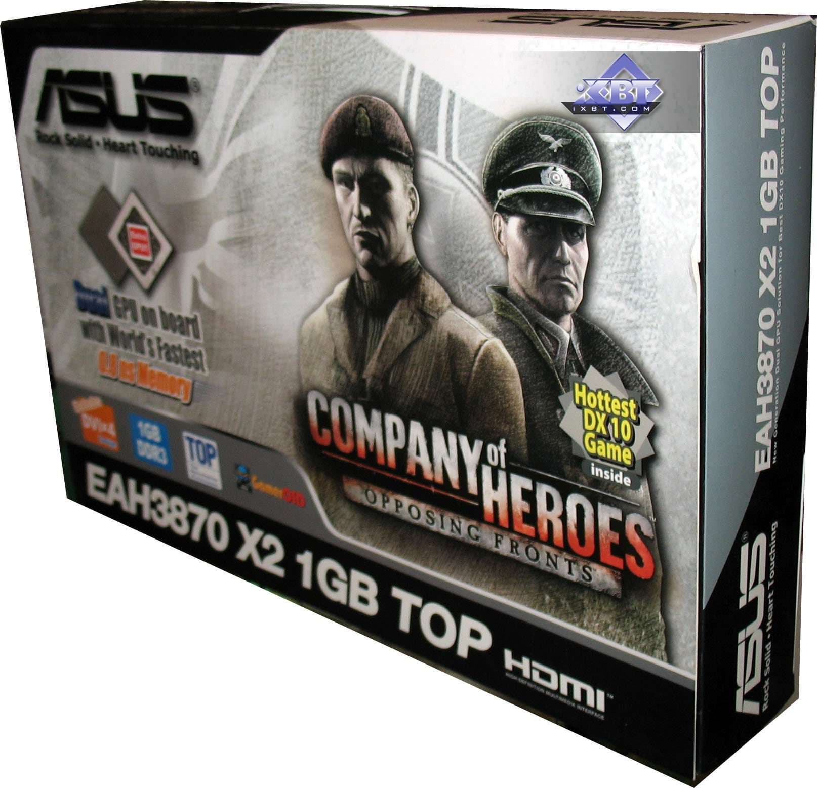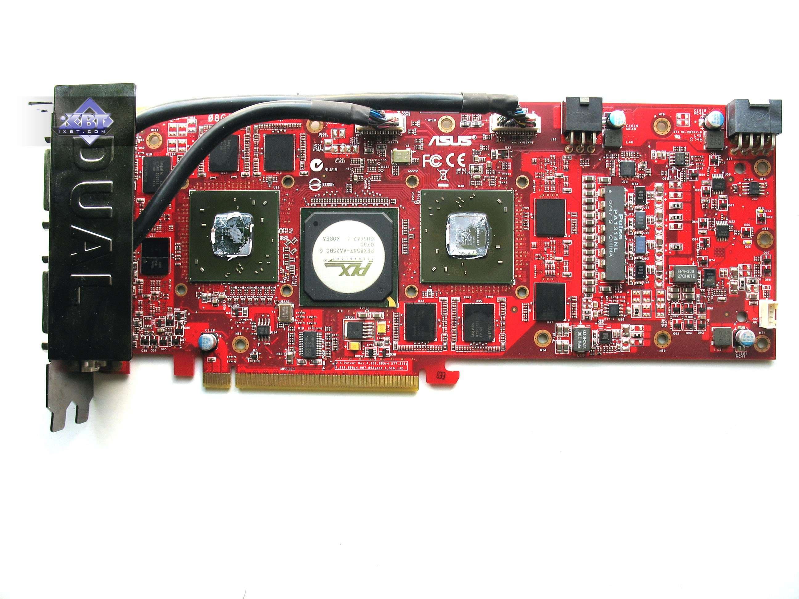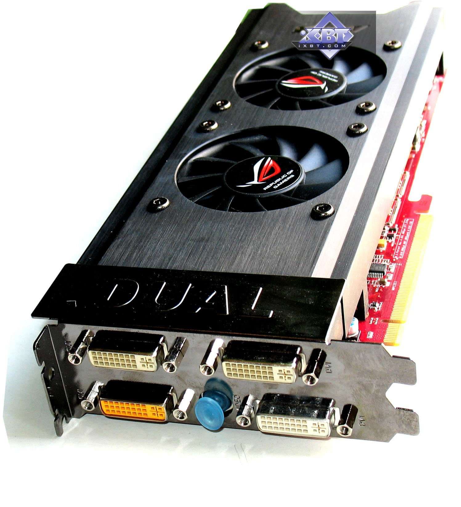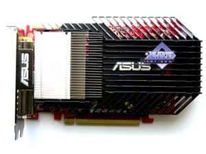 Asus EAH3870X2 TOP (RADEON HD 3870 X2) 2x512MB PCI-E — очень интересное изделие. Имеет 4 гнезда вывода, поэтому может понравиться любителям мультимониторности, и при этом не теряется ТВ-выход. Для любителей трехмерной графики — это мощный ускоритель на повыщенных частотах, может составлять конкуренцию топовым продуктам Nvidia. Однако есть и минус — сильный нагрев.