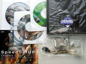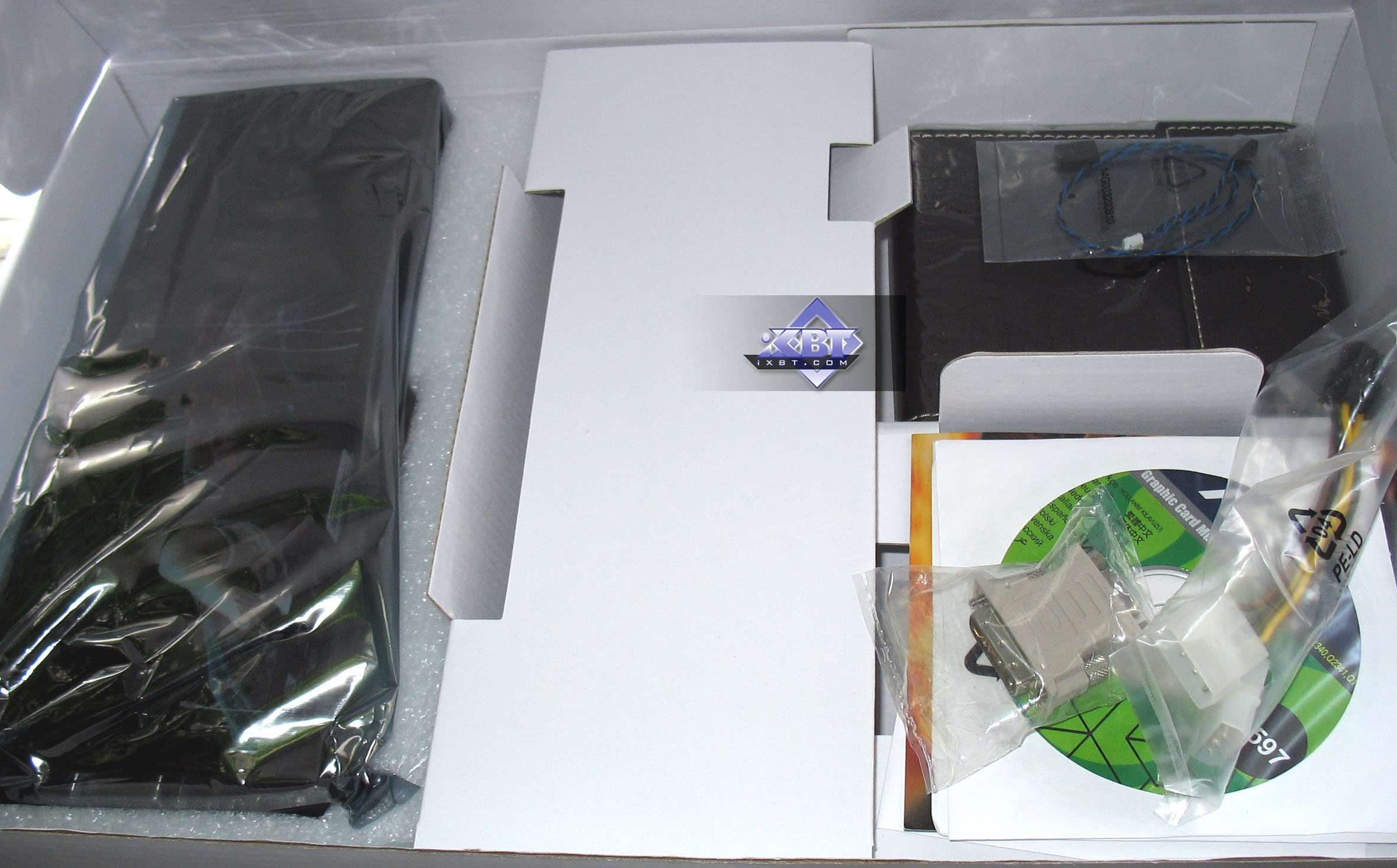 Базовый комплект поставки должен включать в себя: руководство пользователя, диск с драйверами и утилитами, переходник-адаптер DVI-to-VGA, DVI-to-HMDI адаптер (кроме 9800 GX2), адаптер компонентного вывода (TV-out) (кроме 9800 GX2), а также разветвители внешнего питания и аудио-шнурок для соединения со звуковой картой (для передачи звука по HDMI). Ниже мы покажем, что предлагается к каждой карте дополнительно.