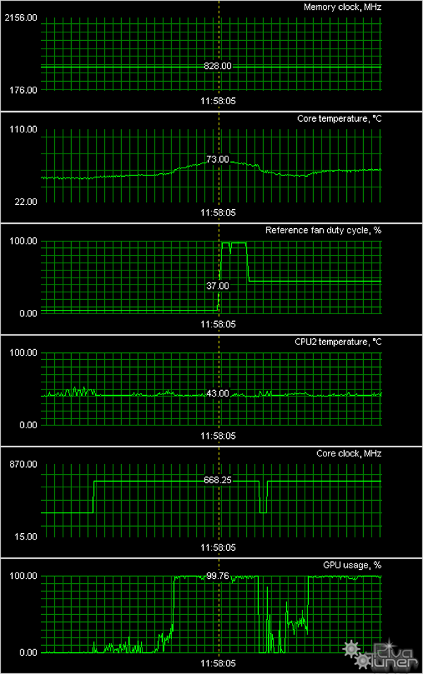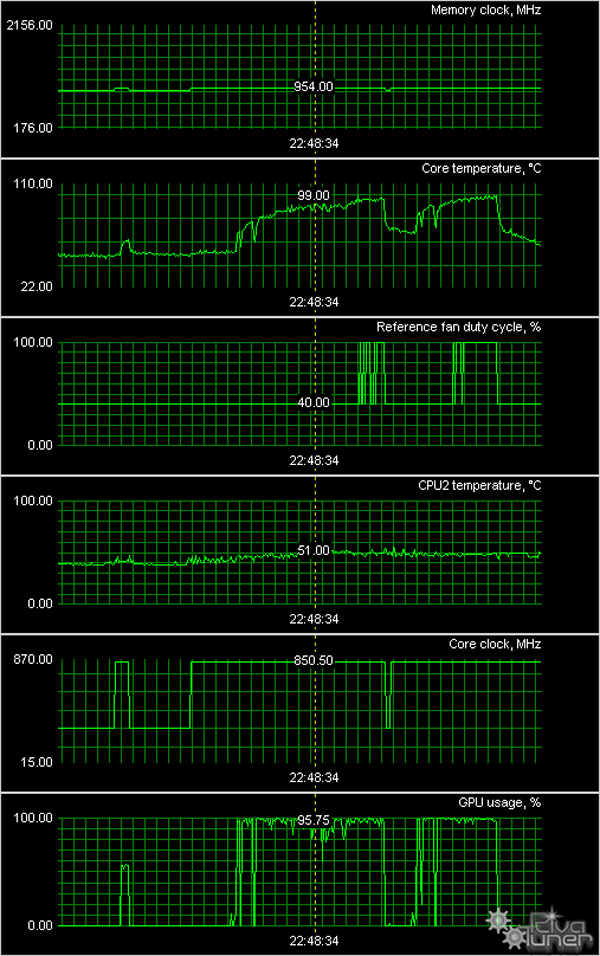 Мы провели исследование температурного режима с помощью утилиты RivaTuner (автор А.Николайчук AKA Unwinder) и получили следующие результаты (исследовать снова 9800 GTX/GX2 не стали, ранее уже тестировали):