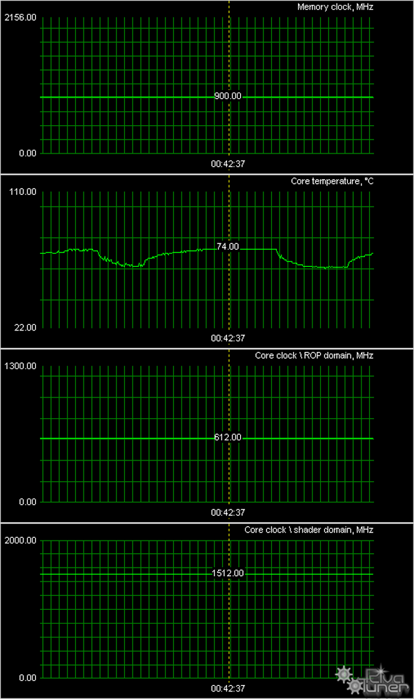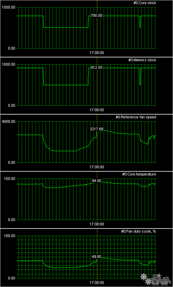 Для всех карт мы провели исследование температурного режима с помощью утилиты RivaTuner (автор А.Николайчук AKA Unwinder) и получили следующие результаты: